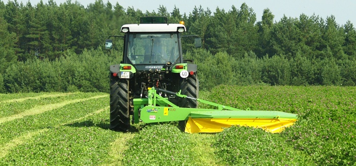 Kosiarki ze spulchniaczem pokosu Z 010/4 posiadają w standardzie cylinder hydrauliczny, który umożliwia transport maszyny w pionie z tyłu bądź z boku ciagnika. Fabrycznie nastawiona wysokośc koszenia (5,8 cm) ma wpływ na szybkość odrastania traw i nie niszczy układu korzeniowego roślin.
